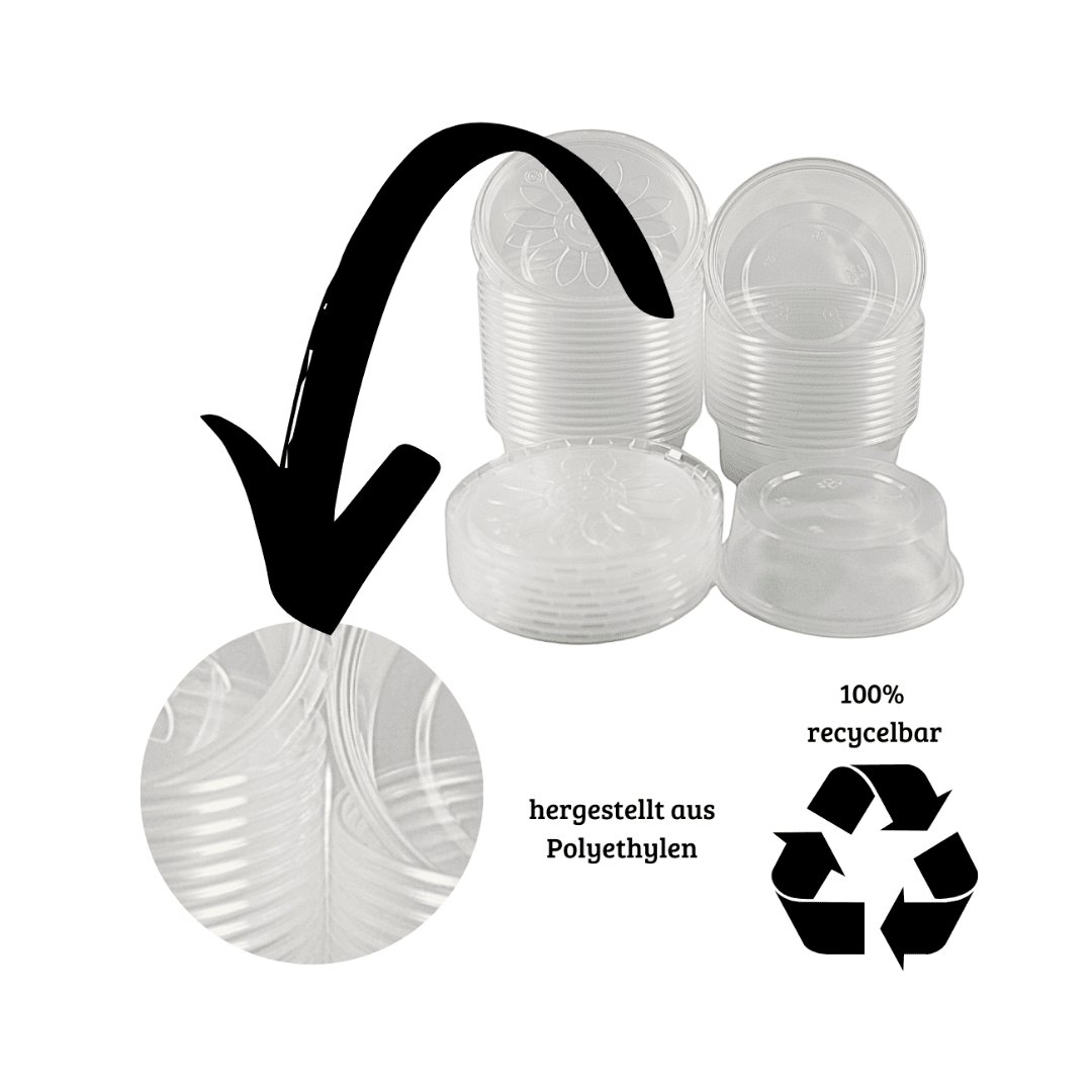Für umweltbewusste Betriebe sind die Saucenbecher aus recycelbaren Polypropylen die ideale Verpackungslösung. Hergestellt aus vollständig recycelbarem Material, sind sie robust und dennoch leicht zu entsorgen. Dank der praktischen Größe können Sie die Probierbehälter platzsparend lagern. Durch die umweltfreundliche Herstellung passen die mini Portionsbecher perfekt zu Gastronomiebetrieben, die verantwortungsvoll handeln möchten. Kombinieren Sie Stil und Funktionalität mit einer nachhaltigen Verpackung, die bei Ihren Gästen garantiert gut ankommt.