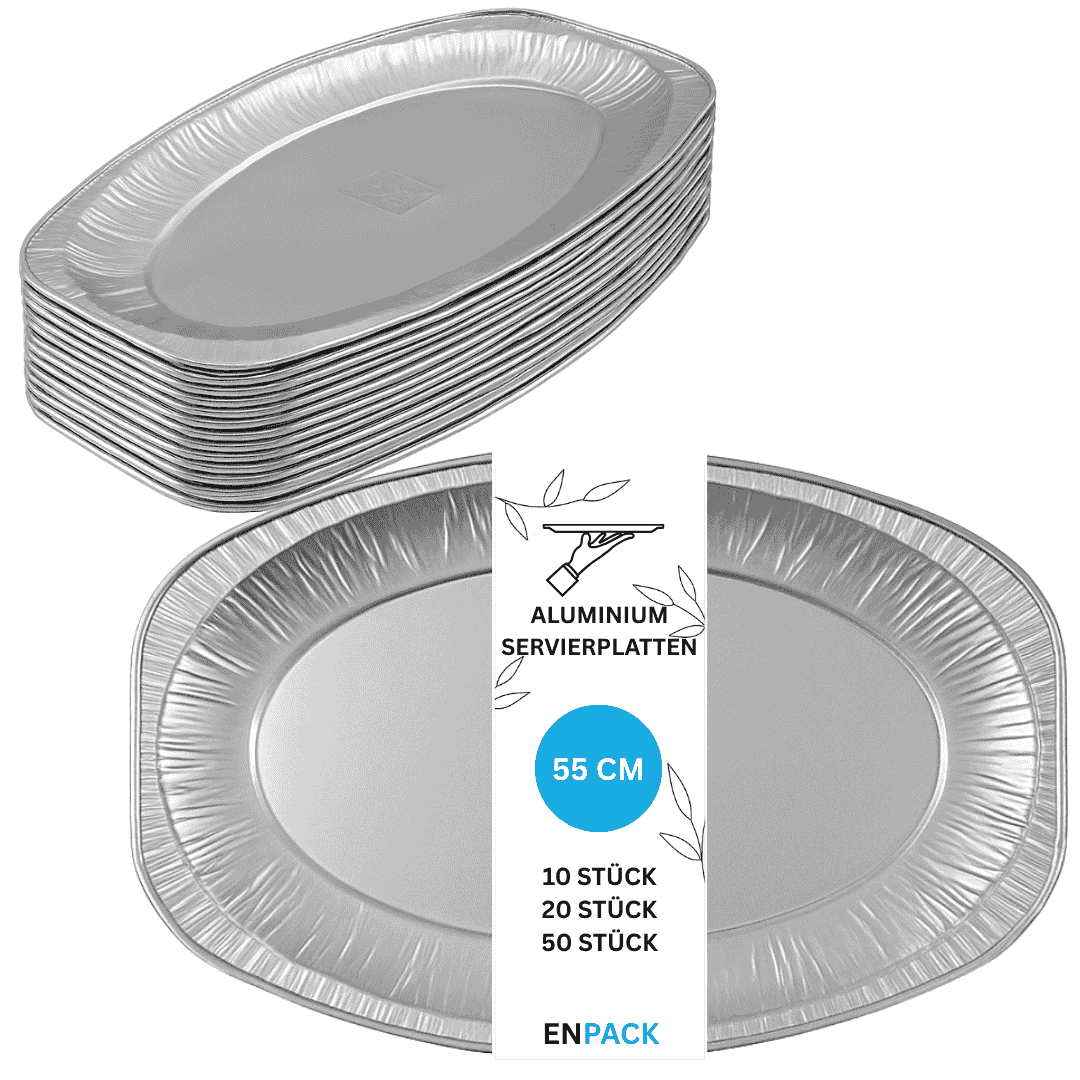 Die Alu Servierplatte mit einer praktischen Länge von 55 cm ist die ideale Lösung für großzügige Portionen in der Gastronomie. Sie eignet sich hervorragend für die Präsentation von Hauptgerichten oder Beilagen. Die Platte überzeugt durch ihre Stabilität und Hitzebeständigkeit, sodass sie sowohl im Ofen als auch auf dem Grill eingesetzt werden kann. Optimal für Take-away, Catering oder Buffets - das Serviertablett bietet eine funktionale und ansprechende Möglichkeit, Ihre Speisen sicher und attraktiv zu servieren.