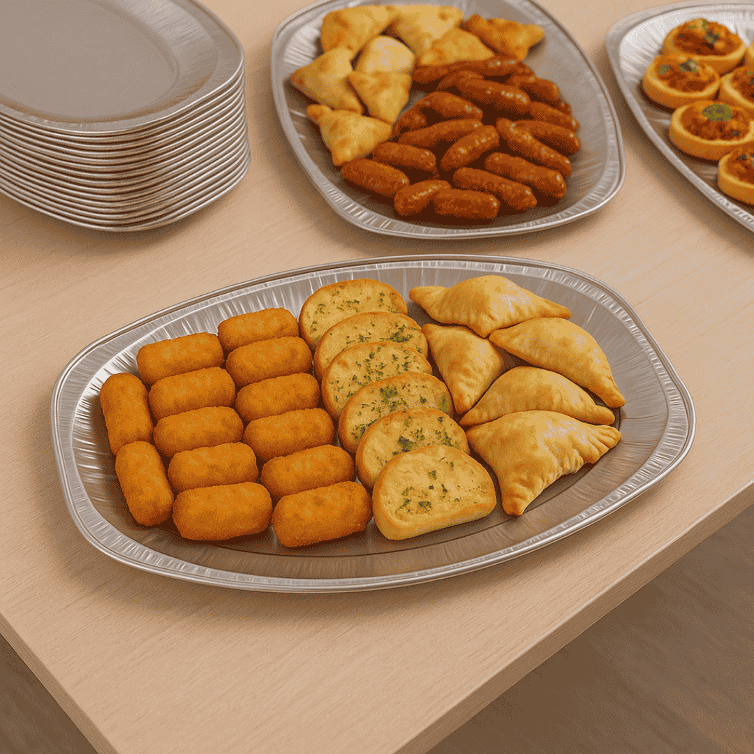 Im Catering-Bereich sind unsere Partyplatten eine hervorragende Wahl um Speisen ansprechend zu präsentieren. Die Stabilität sorgt für einen sicheren Transport, während die Aluminiumoberfläche die Speisen frisch hält. Besonders bei Buffets oder Veranstaltungen mit vielen Gästen bieten diese Party-Tischwaren eine ideale Lösung, da sie sich leicht stapeln und platzsparend lagern lassen. Zudem haben Sie keinen Zeitaufwand mit der Reinigung, da die Grillplatten nach der Veranstaltung einfach entsorgt oder recycelt werden können. Die Verwendung von Aluminium-Tabletts trägt somit zu einem reibungslosen Ablauf bei Catering-Events bei und sorgt dafür, dass die Speisen stets in einladender Form serviert werden.