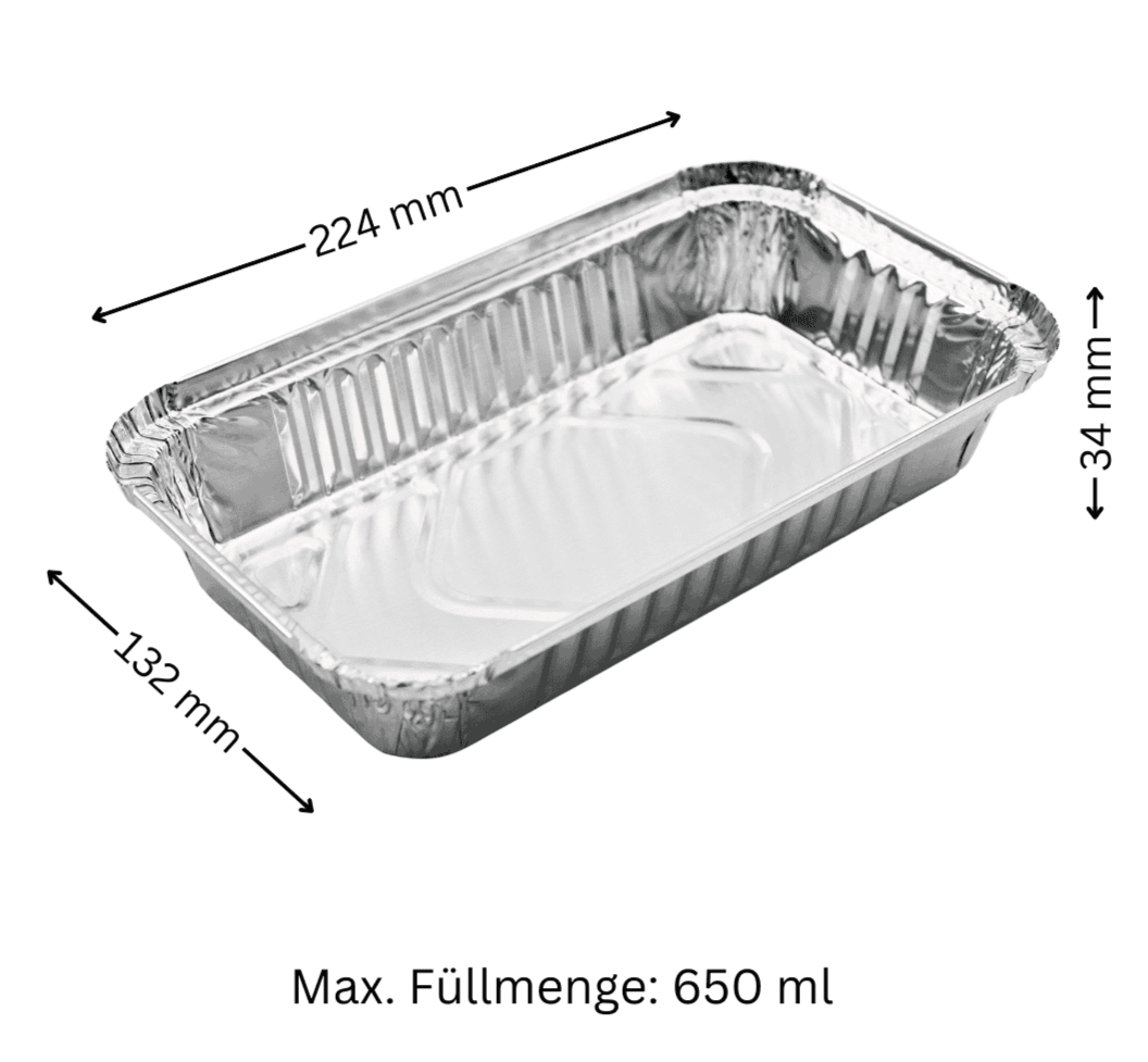 Die Aluschale R65 mit einer Füllmenge von 650 ml ist die ideale Lösung für großzügige Portionen in der Gastronomie. Mit ihren praktischen Maßen von 224 x 132 x 34 mm eignet sie sich hervorragend für die Präsentation von Hauptgerichten, Beilagen oder sogar Desserts. Die Schale überzeugt durch ihre Stabilität und Hitzebeständigkeit, sodass sie sowohl im Ofen als auch auf dem Grill eingesetzt werden kann. Perfekt für Take-away, Catering und Buffets – die Aluschale R65 bietet eine funktionale und ansprechende Möglichkeit, Ihre Speisen sicher und attraktiv zu servieren.