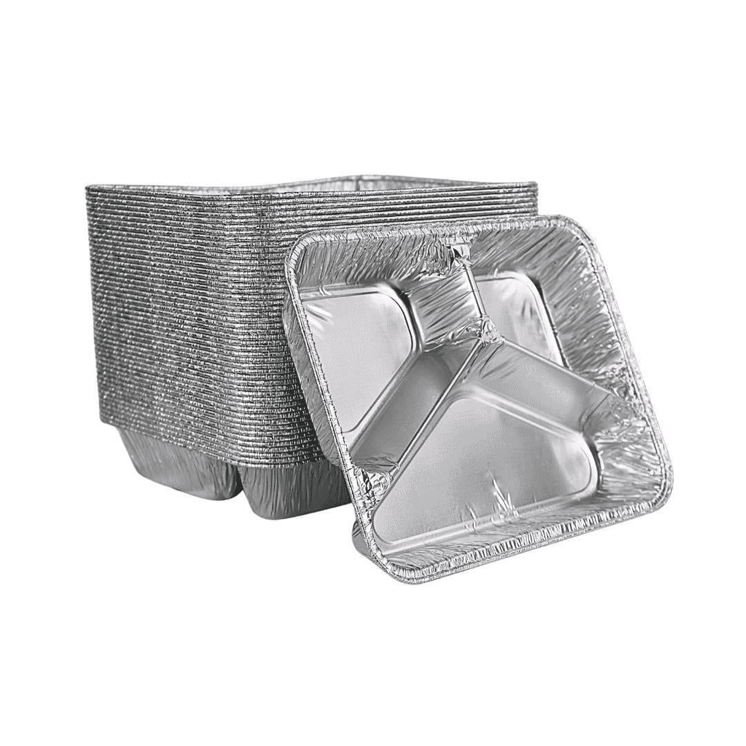 Die dreigeteilte Aluschale R819 (960 ml) ist die perfekte Lösung für Menüs mit mehreren Komponenten. Mit den Maßen 227 × 177 × 40 mm und einer Stärke von 58 µm bietet sie hygienische Trennung, hohe Stabilität und Hitzebeständigkeit. Erhältlich in 100, 200 oder 500 Stück – mit Deckel, ohne Deckel oder nur Deckel separat.