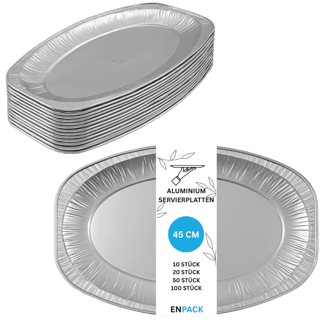 Gefertigt aus robustem Aluminium, bieten die Grill-Aluschalen maximale Stabilität und Hitzebeständigkeit. Dank des Materials eignet sich die Partyplatte perfekt für den Einsatz in der Gastronomie, da sie problemlos Temperaturen bis zu 400°C standhält - ideal für Ofen- oder Grillgerichte. Durch die Leichtigkeit und Widerstandsfähigkeit des Aluminiums, werden die Speisen immer zuverlässig geschützt. Ein großer Vorteil des Materials ist zudem seine Umweltfreundlichkeit: Aluminium kann unendlich oft recycelt werden. Nach Gebrauch lässt sich die Platte problemlos recyceln und trägt somit zur Ressourcenschonung bei.