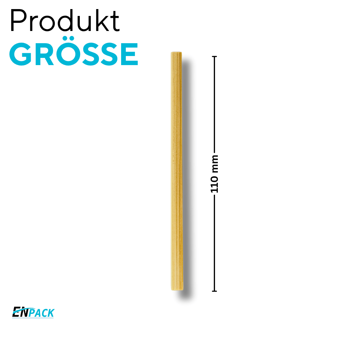 Die Enpack Bambus-Rührstäbchen mit 110 mm Länge sind die nachhaltige, plastikfreie Alternative zu herkömmlichen Umrührstäbchen aus Kunststoff. Hergestellt aus hochwertigem Bambus, sind sie stabil, splitterfrei und vollständig kompostierbar.