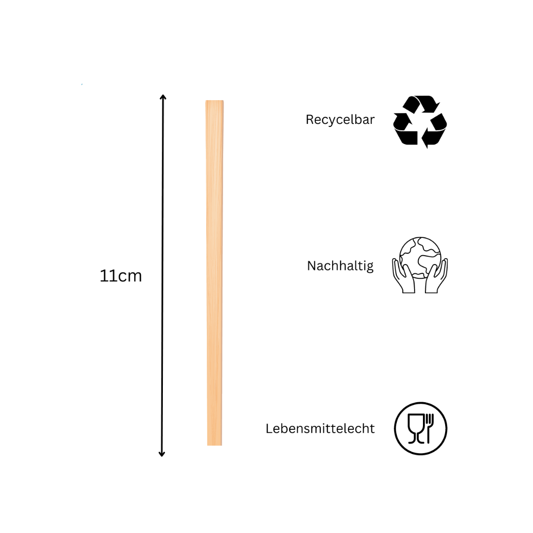 Unsere Rührstäbchen aus Holz sind die nachhaltige Alternative zu Plastik! Sie bestehen aus nachwachsenden Rohstoffen und sind vollständig biologisch abbaubar. Egal ob heißer Kaffee, Tee oder kalte Getränke – diese Stäbchen überzeugen durch Stabilität und angenehme Handhabung.