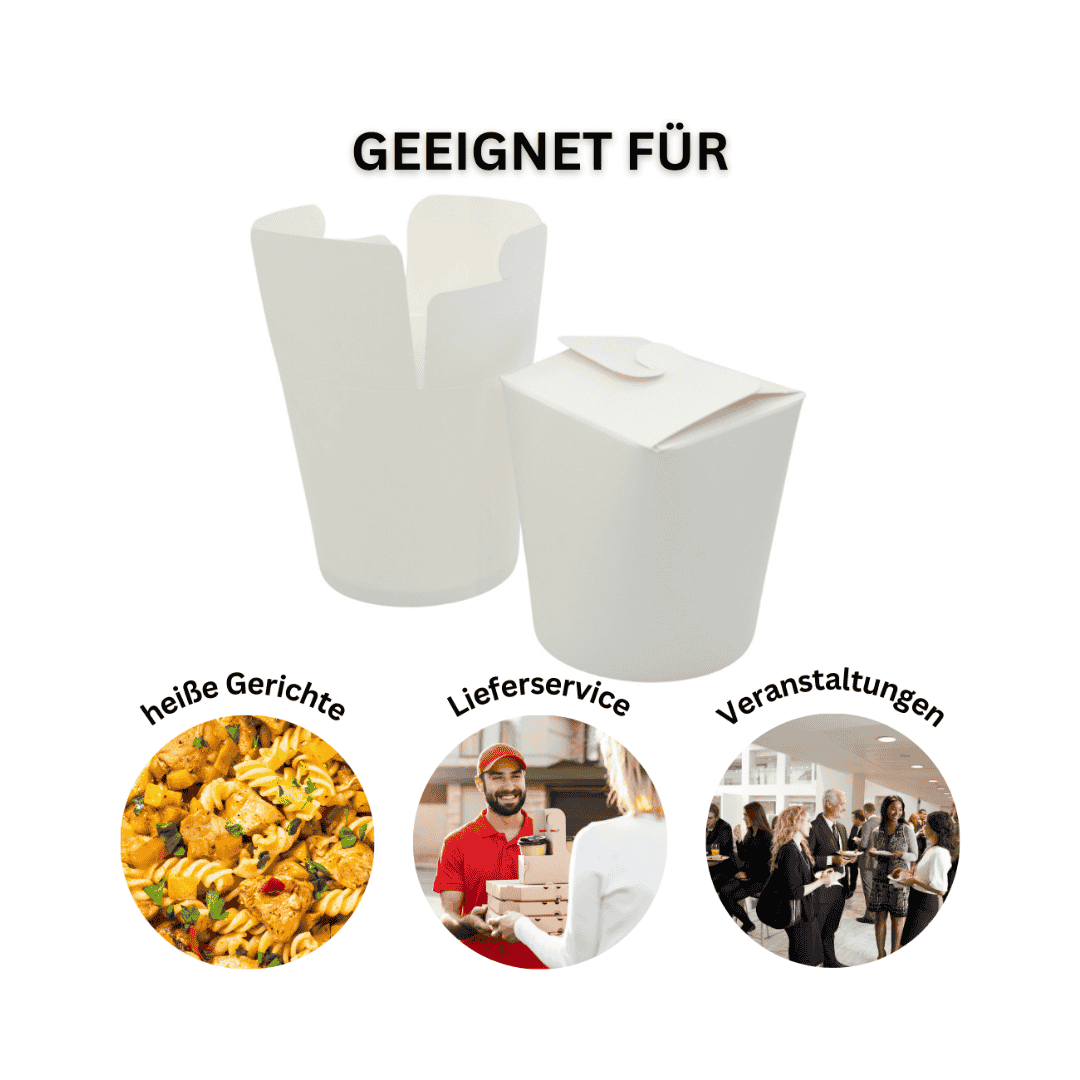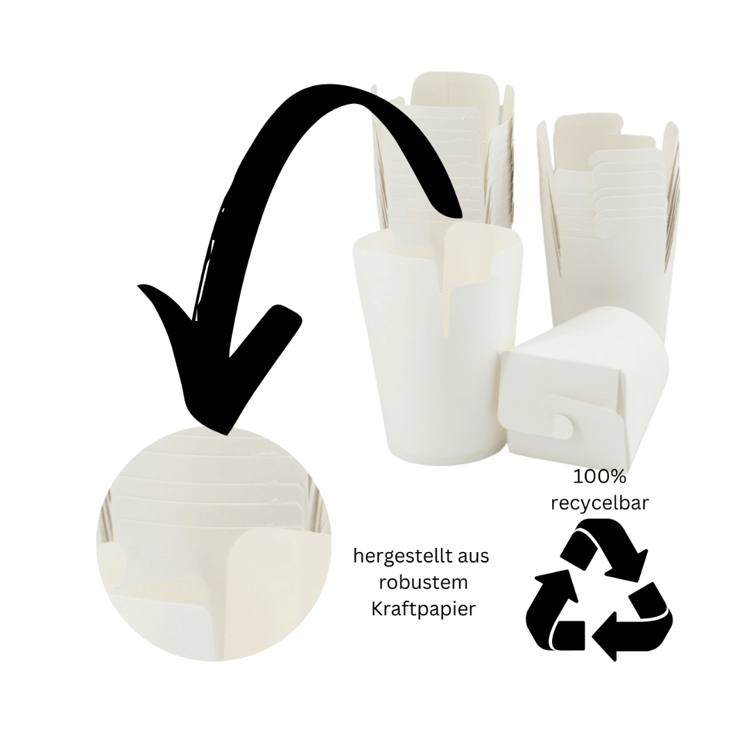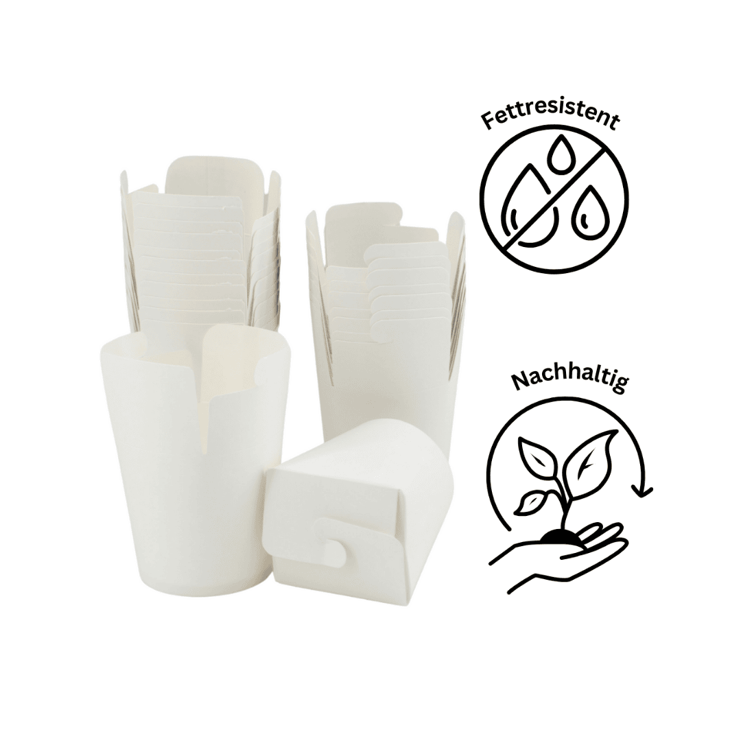 Durch die umweltfreundliche Herstellung passen die Nudelboxen To Go perfekt zu Gastronomiebetrieben, die verantwortungsvoll handeln möchten. Kombinieren Sie Stil und Funktionalität mit einer nachhaltigen Verpackung, die bei Ihren Gästen garantiert gut ankommt.