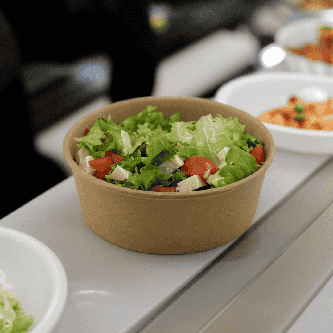 Mit unseren 1300ml Pappschalen aus Kraftpapier sichern Sie sich eine zuverlässige, stilvolle und umweltfreundliche Lösung für das Servieren von Speisen. Ideal für den mobilen Einsatz oder für Veranstaltungen, bei denen Komfort ohne Kompromisse bei der Umweltverantwortung gewünscht ist. Wählen Sie unsere biologisch abbaubaren Pappsalatschalen für eine saubere, praktische und nachhaltige Option bei all Ihren Essensanlässen.