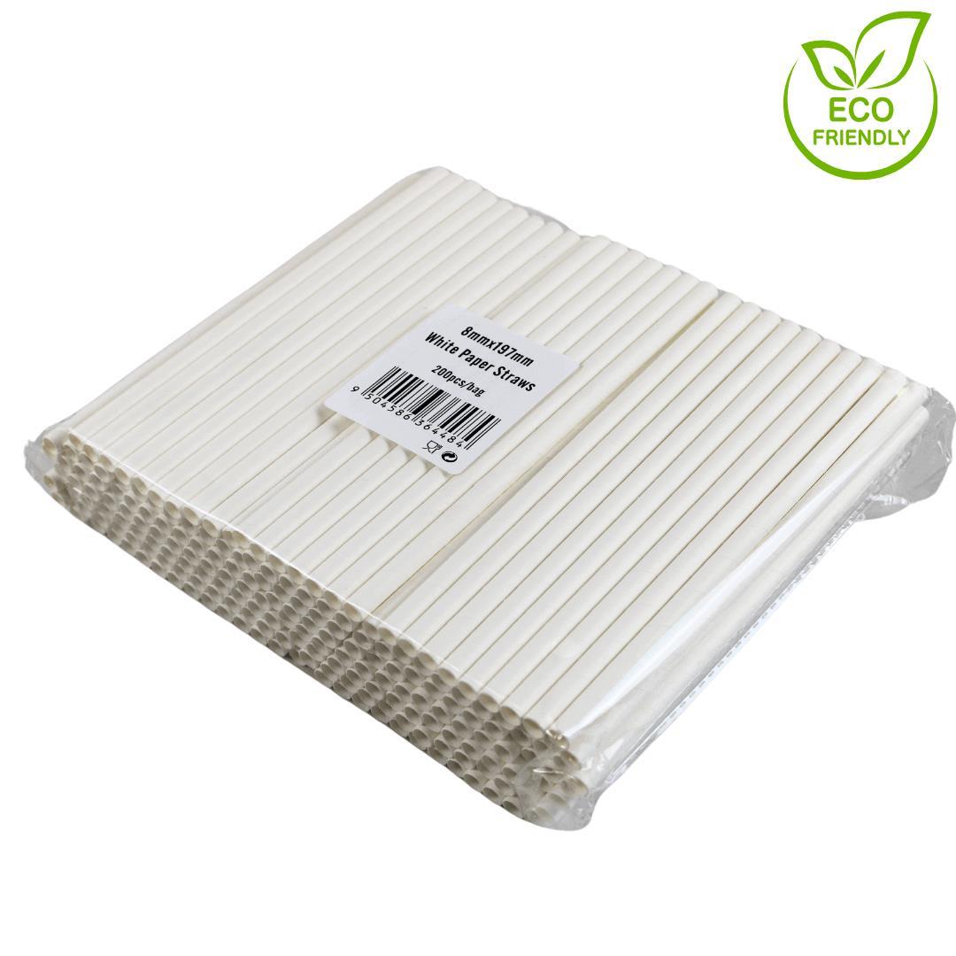 Strohalm Papier 8 x197 mm 200 Stk weiss