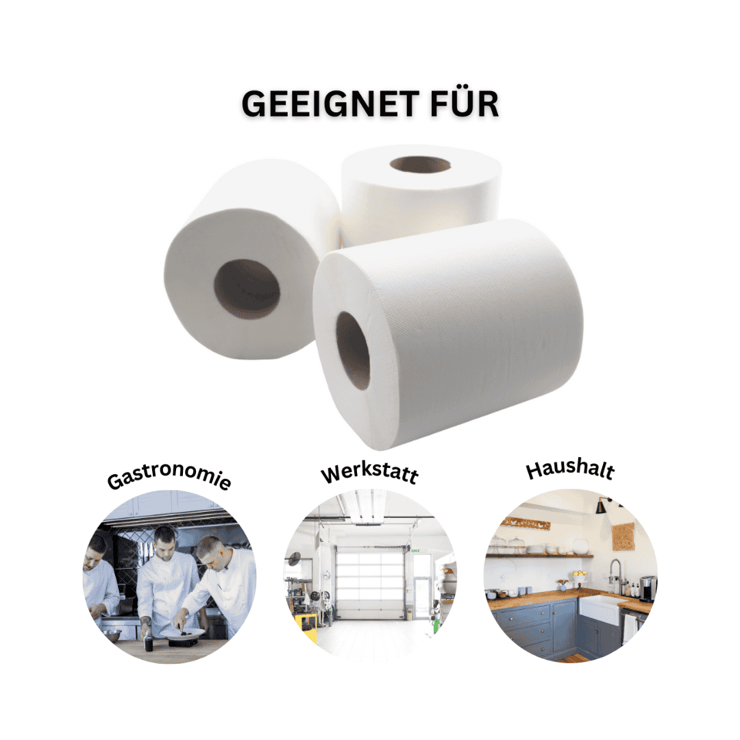 Unsere weißen Küchentücher überzeugen durch ihre Vielseitigkeit und sind ideal für zahlreiche Einsatzbereiche. Sie eignen sich perfekt für Werkstätte, Gastronomie oder den eigenen Haushalt. Dank ihrer hochwertigen Verarbeitung bieten die Papierhandtuchrollen eine zuverlässige Lösung für die Händetrocknung. Hergestellt aus Zellstoff, sind sie nicht nur umweltfreundlich, sondern auch effizient im Verbrauch. Ihre Größe ermöglicht eine komfortable Nutzung, während das Design eine professionelle und moderne Ausstattung Ihrer Waschräume unterstützt.